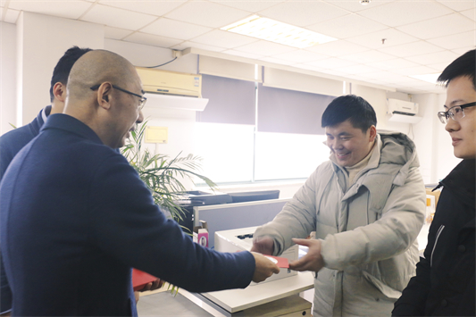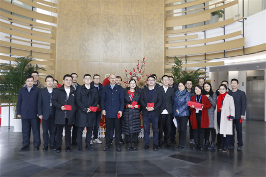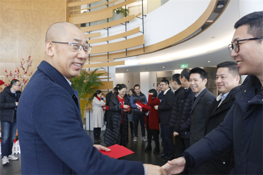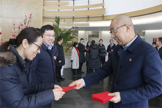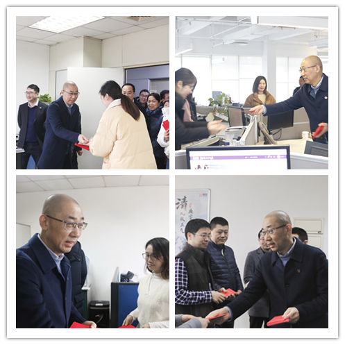 股总公司各个部位门担任人,为集團南京开发区全部业务人员派发施工利是,送出去迎新年的美好的生活祝词。