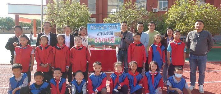 活动最后,高新二小首届“香海杯”足球联赛揭幕,江西香海行政部经理梁永为比赛开球。