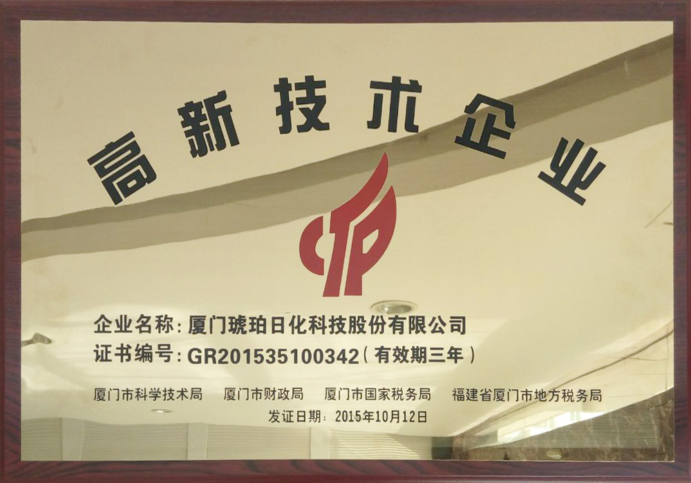 厦门琥珀再次获评“高新技术企业”