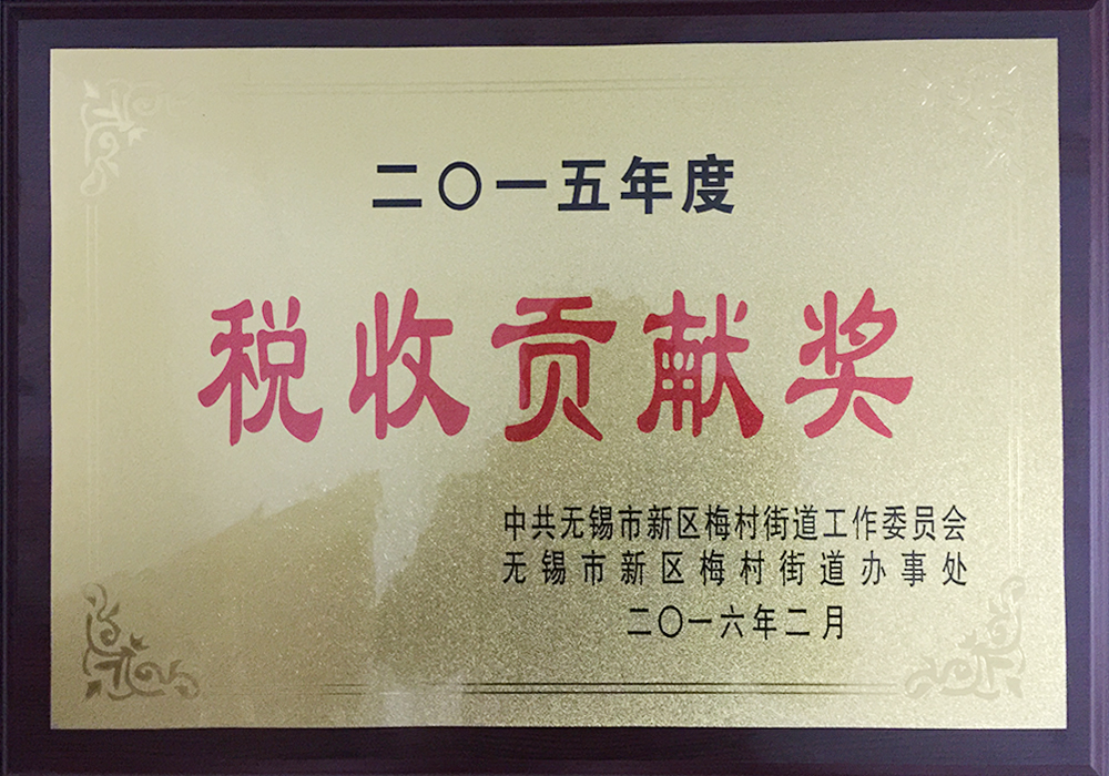 无锡华海荣获无锡新区梅村“2015年度税收贡献奖”
