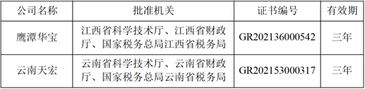 鹰潭壹号娱乐 、云南天宏获认国家高新技术企业