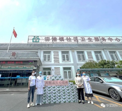 6月9日,受总经理钱戎女士委托,上海奕方财务总监殷金梅、行政总监廖琴带领上海奕方员工前往松江区泖港镇,为疫情以来守护一方平安的抗疫人员送去慰问物资。