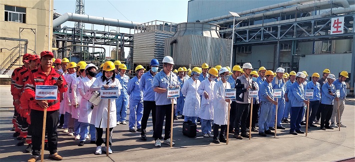 日前,江西香海生物科技有限公司开展2022年生产安全事故应急演练,演练模拟项目:车间溴素中间罐管道突发泄漏,操作工人在前期处置时中毒,并存在有毒化学烟雾向厂界外逸的危险。此次演练江西香海管理层及在岗职工共计150余人参加。