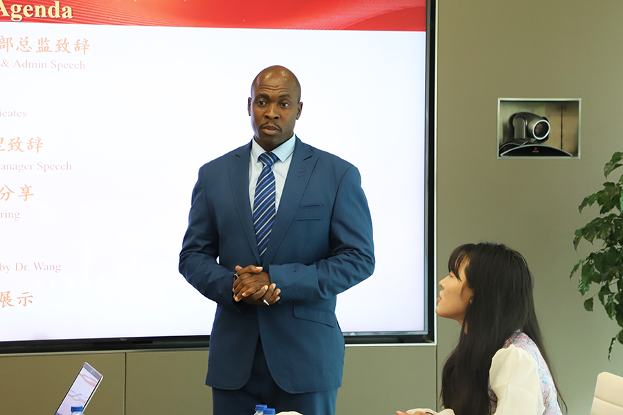 文化,掌握技能,学有所成,不枉此行。科创中心基础研究中心副主任工程师崔秀明女士、非洲F&G总经理朱华文先生分别代表培训主办方和参训方做了开班发言。