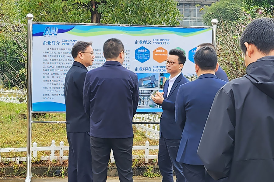 集团香原料事业部总经理、江西香海生物科技有限公司董事长薛金春、江西香海生物科技有限公司常务副总经理田新衍接待并陪同调研。