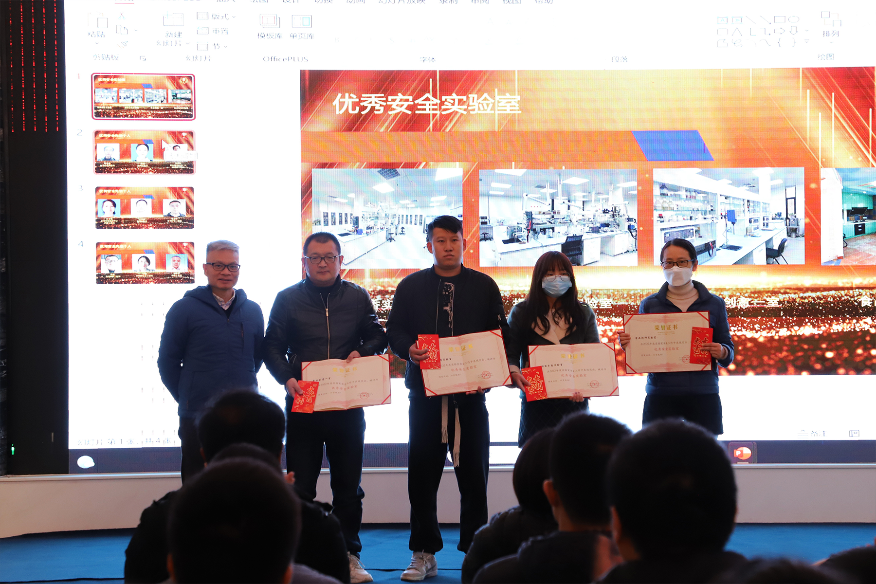 会议还表彰了2023年度在安全工作方面表现突出的“优秀安全实验室”和“安全先进个人”,王总和陈总分别为获得表彰的团体和个人颁奖。